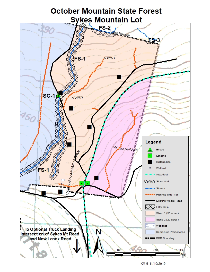This project is located in the northern portion of October Mountain State Forest, which is the largest state forest in Massachusetts. This area is currently being managed under the "Central Berkshire Forest Resource Management Plan" (2007) and the "Landscape Designations for DCR Parks & Forests: Selection Criteria and Management Guidelines" (2012). The project area contains 218 acres of northern hardwood - conifer forests (mixedwood) stands. This area has been affected by the emerald ash borer and repeated ice storms.