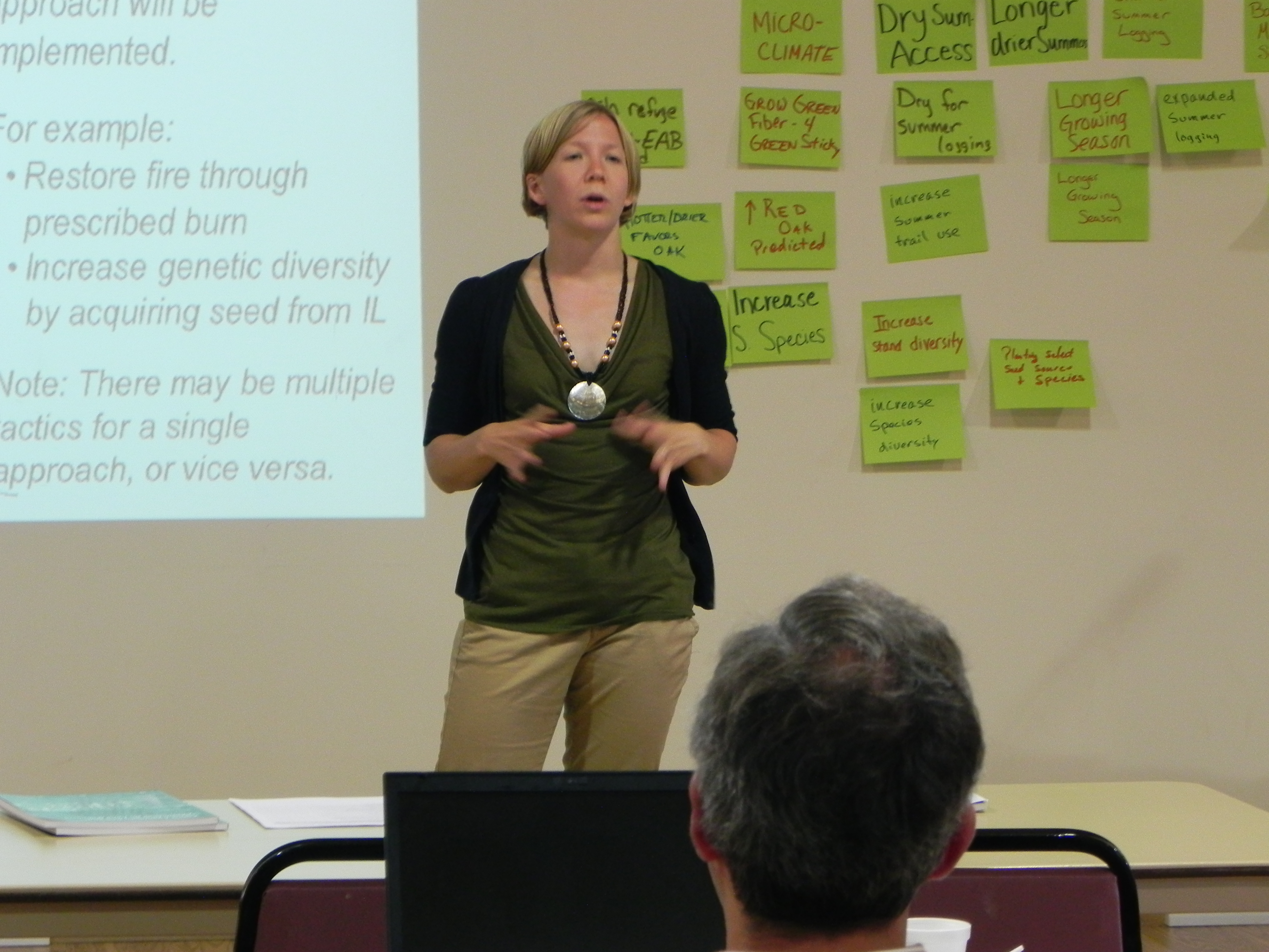 Participants in the FAPP training contributed eight individual forest management projects, covering a wide range of forest types and management goals. With coaching and input from workshop organizers, participants then carried these projects through the entire Adaptation Workbook process outlined in the Forest Adaptation Resources document. This process helped each group design climateinformed management projects that use innovative adaptation actions and practical monitoring metrics to gauge success. Participants also outlined personal next steps to continue to incorporate climate change considerations into their work.